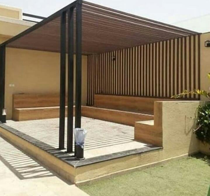 - برجولات بلاستيكية أو بولي كربون: تقاوم الشمس والمطر وتتوفر بألوان وتصاميم متعددة.